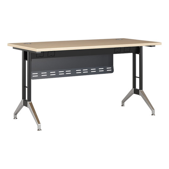 Bàn chân sắt LE140C12 trang bị hệ thống chân ống thép sơn đen kết hợp mạ, thanh giằng có máng điện tích hợp tiện dụng.