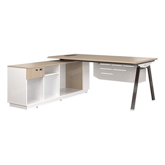 - Laminate kết hợp Melamine L2M12 và L5M26. Mặt bàn bo mỏ vịt, mặt ngăn kéo và canh hộc, tủ bo 1/4 đường tròn.