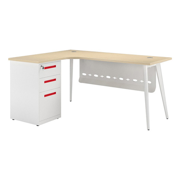 - Bàn làm việc góc lượn LUX1612YC10 trang bị hộc sắt 03 ngăn kéo tiện dụng.