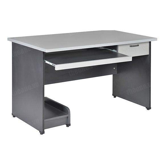 - Bàn vi tính đẹp HP204S trang bị một khay bàn phím, ngăn kéo nhỏ và một kệ CPU. Thiết kế mặt trước có yếm lửng trang trí.