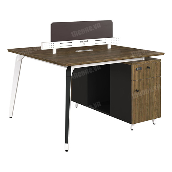 Thiết kế phần mặt bàn làm việc sử dụng chất liệu gỗ công nghiệp MFC phủ melamine cao cấp bên trên có vách vách ngăn kiểu mới, dạng ống khắc laze trang trí. Bàn module văn phòng STMD03-2C16 sử dụng hộc liền, giữa hai hộc có chỗ để CPU, thiết kế phần hộc liền gồm 1 ngăn kéo có khóa số và 1 cánh mở