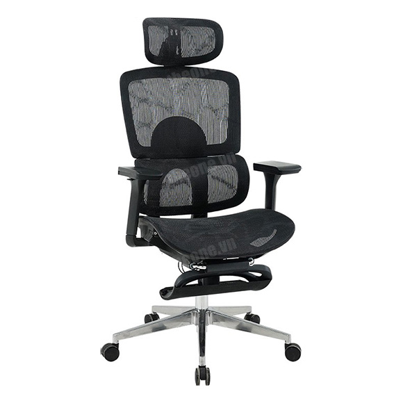 Quy cách: tựa ghế có khả năng ngả hãm nhiều góc độ. Tay 4D, mặt tay bằng PU mềm, đệm có thể điều chỉnh chiều sâu. Ghế có cơ cấu điều chỉnh bát bằng tay gạt tiện lợi gắn 2 bên đệm, có cơ cấu để chân tiện lợi khi ngả thư giãn. Tựa đầu 4D tùy chỉnh nhiều vị trí phù hợp. Ghế có 02 lựa chọn: nhựa đen và nhựa ghi. Chân hợp kim nhôm.