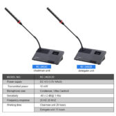 Thiết bị còn hỗ trợ chức năng ưu tiên chủ tọa (Chairman Priority), khi chủ tọa nhấn nút ưu tiên có thể ghi đè tiếng micro đại biểu để kiểm soát cuộc họp. Ngoài ra, micro delegate (đại biểu) có chức năng giới hạn thời gian phát biểu — sau khi hết thời gian, đơn vị sẽ tự tắt để tránh người nói vượt thời gian quy định.